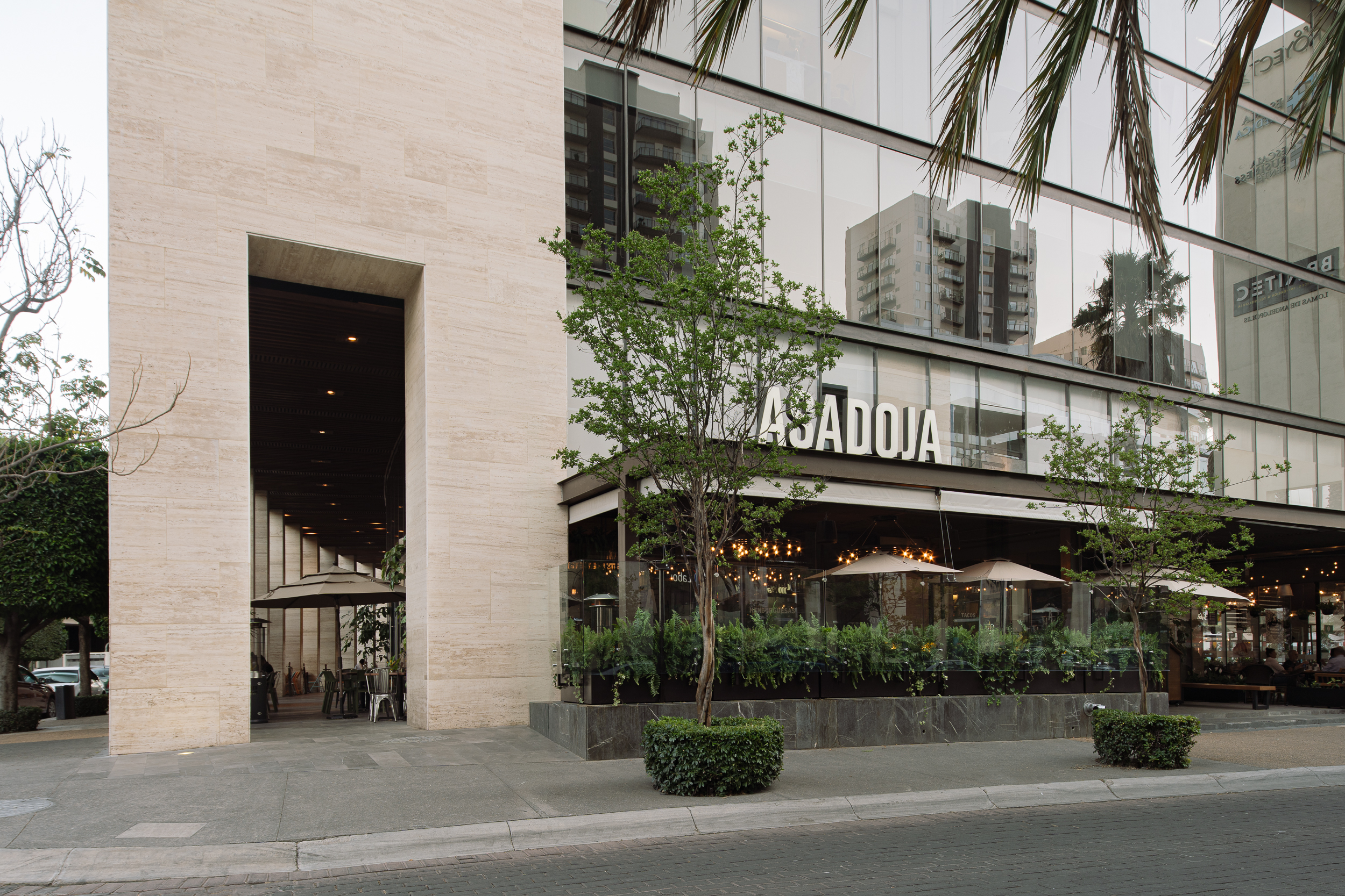 Tras un proceso de rebranding, Asadoja confió en Caldera para diseñar su tercera sede en Lomas de Angelópolis. El concepto crea un espacio para compartir, inspirado en la experiencia de estar dentro de un asador. Se emplearon tabique negro, celosías metálicas, microcemento neutro y luz indirecta cálida, complementados con vegetación que aporta frescura y equilibra lo industrial. La barra funciona como elemento de bienvenida y transición hacia el área de comensales, integrando diseño y gastronomía en un ambiente cómodo y relajado.