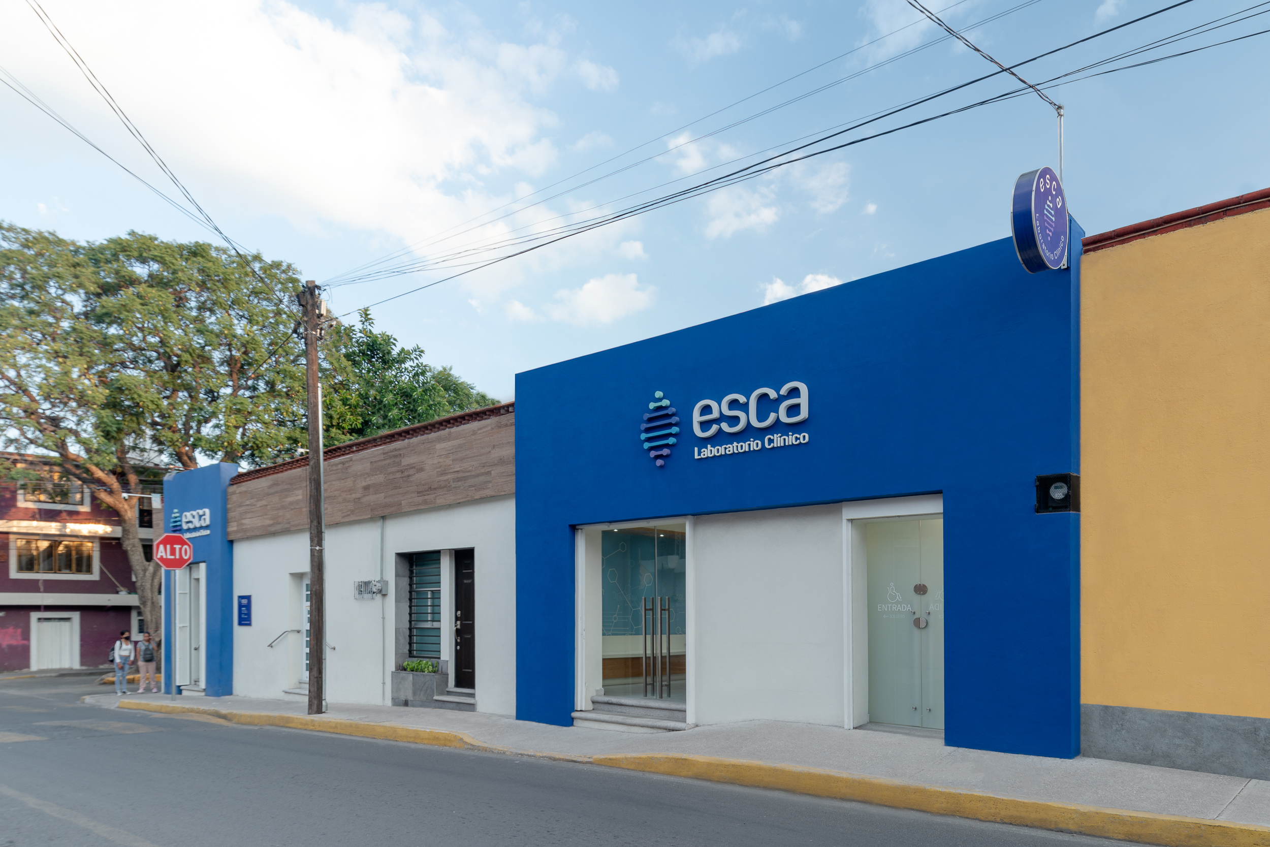 Ubicado en Atlixco, Puebla, el proyecto de diseño arquitectónico e interiorismo para ESCA combinó su refresh de marca con su primera ampliación arquitectónica. Con estética limpia y luminosa, paleta blanca con acentos azul claro y maderas claras, transmite serenidad, calidez y equilibrio visual. La gráfica ambiental funcional guía al usuario, mientras el laboratorio refleja profesionalismo y armonía arquitectónica.