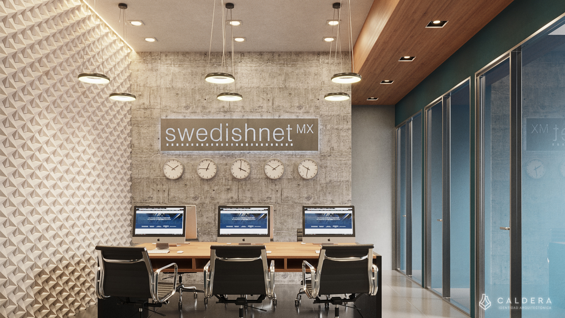 Oficina Swedishnet es un proyecto de diseño arquitectónico e interiorismo que transformó 50 m² en un espacio de trabajo integral con coworking, coffee station, privados y sala de proyección. La distribución optimizada con pasillo central mejora la circulación, mientras la paleta vibrante con azul, plafones blancos y melaminas tipo concreto aporta energía y carácter industrial. La gráfica ambiental, la cancelaría de cristal y el piso de loseta nanopulida crean un ambiente funcional, estético y equilibrado, demostrando que el diseño inteligente puede generar espacios de trabajo eficientes y con identidad propia.